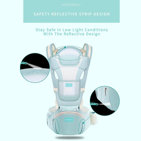 • Highlights: 1. Hand-free waist stool with large storage capacity. 2. Facilitates private breastfeeding 3. Easy-attachability for quick wear. 4. Safety reflective strip & buckle attachment. 5. Foldable head support for sheltering the baby from sun& wind. 6. 3600 air permeability, breathable & ventilating straps. 7. Double connection between waist stool &backstrap using buttons& zipper. It saves your baby’s legs from scratching. 8. Suitable for all seasons.