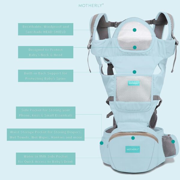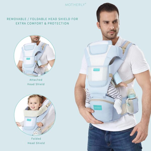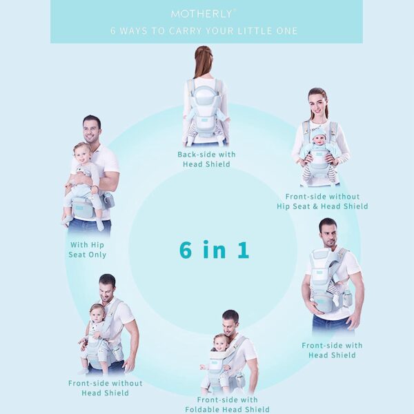 Motherly 6-in-1 Baby Carrier Bag for 6 to 36 Months ,Kid – Kangaroo Style with Hip Seat for Comfort Carrying (Blue)