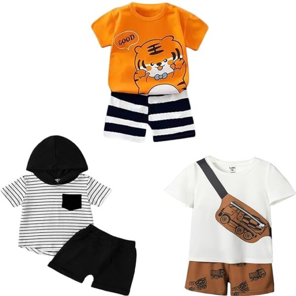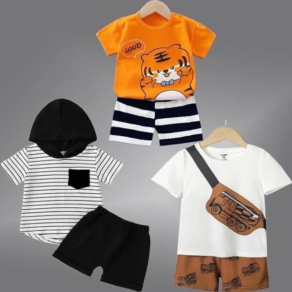 | Generic Name | Lofn Cotton Clothing Sets for Baby Boys & Baby Girls Printed Kids Clothing Sets – Unisex Clothing sets Half sleeve T-Shirt & Shorts Pack Of 3 (T84OR-T70WH-20-T83CP) |