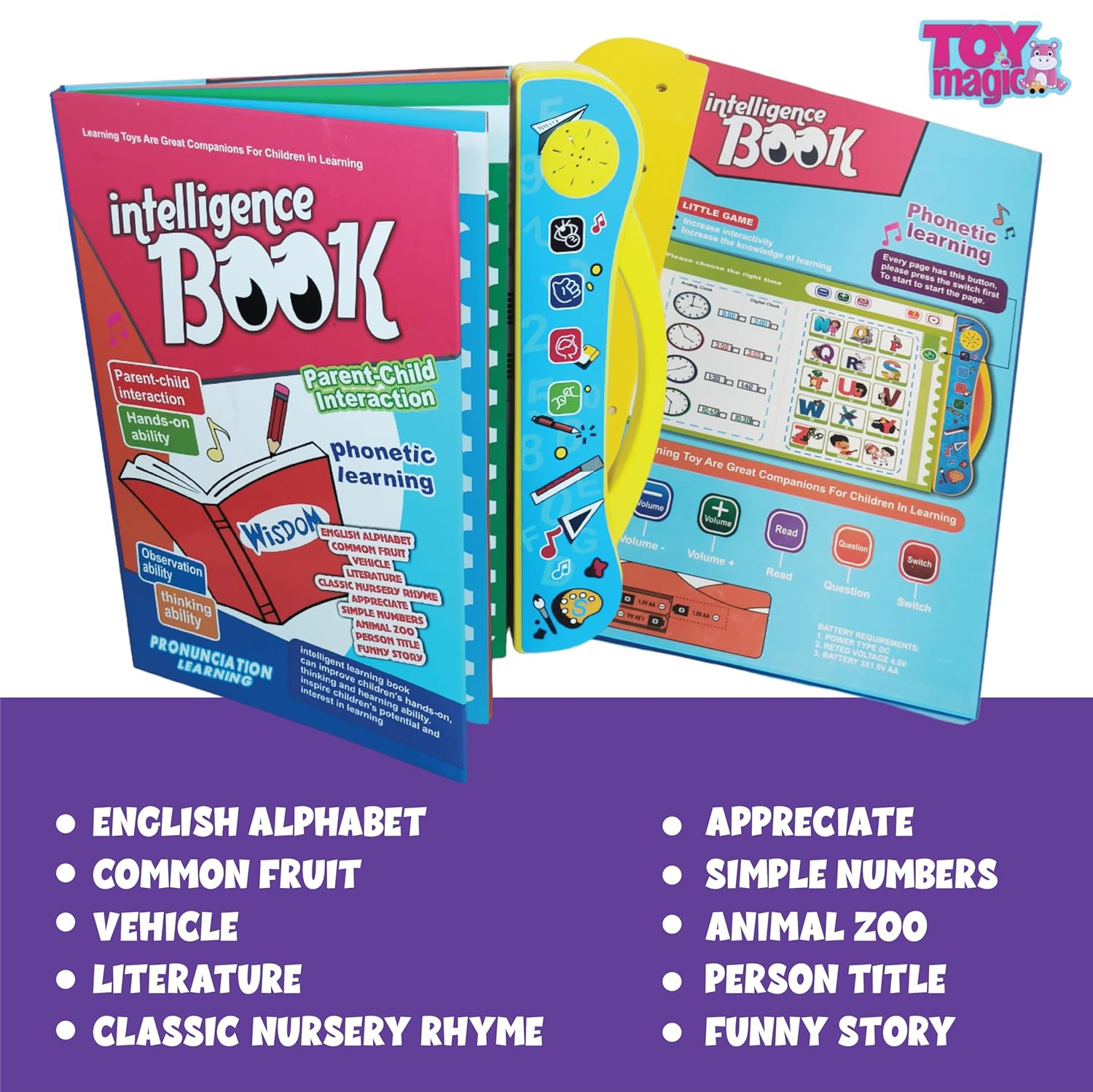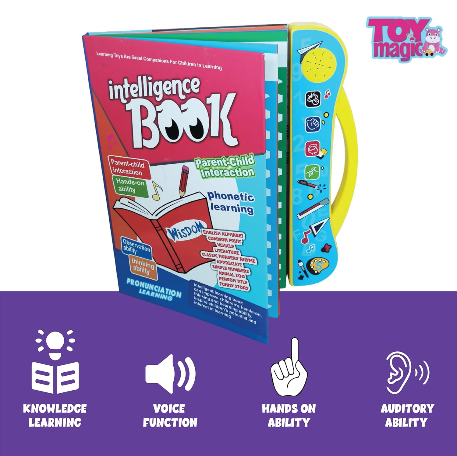 ToyMagic Intelligence Phonetic Learning E-Book|Activity With Alphabet,Numbers,Shapes,Animals,Nursery Rhyme|Birthday Gift|Interactive Musical Toy Book For Kids 3+|Improve Thinking Ability|Made In India