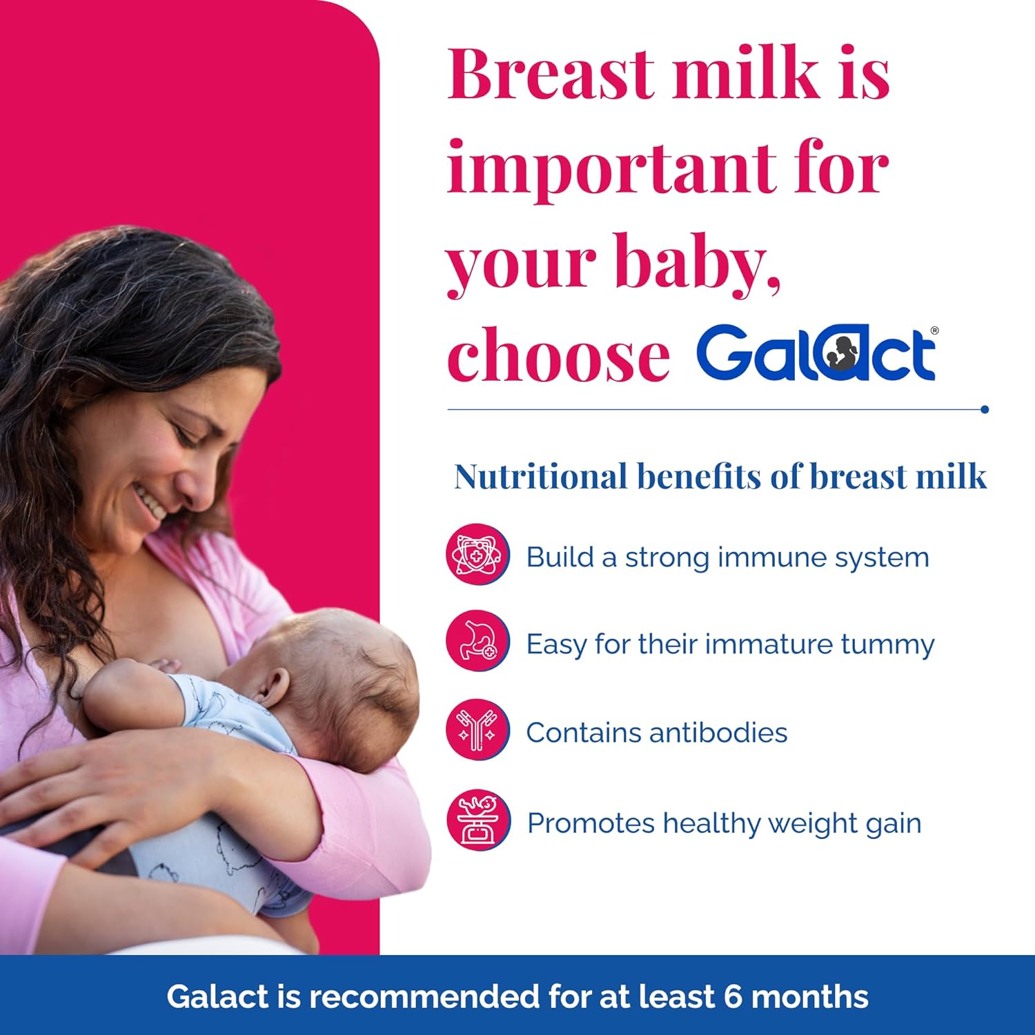 Galact brings in the goodness of natural ingredients like Shatavari, Vidarika, Sowa, Gokshur Panchang, Yashtimadhu and Safed Jeera in a specialized formulation