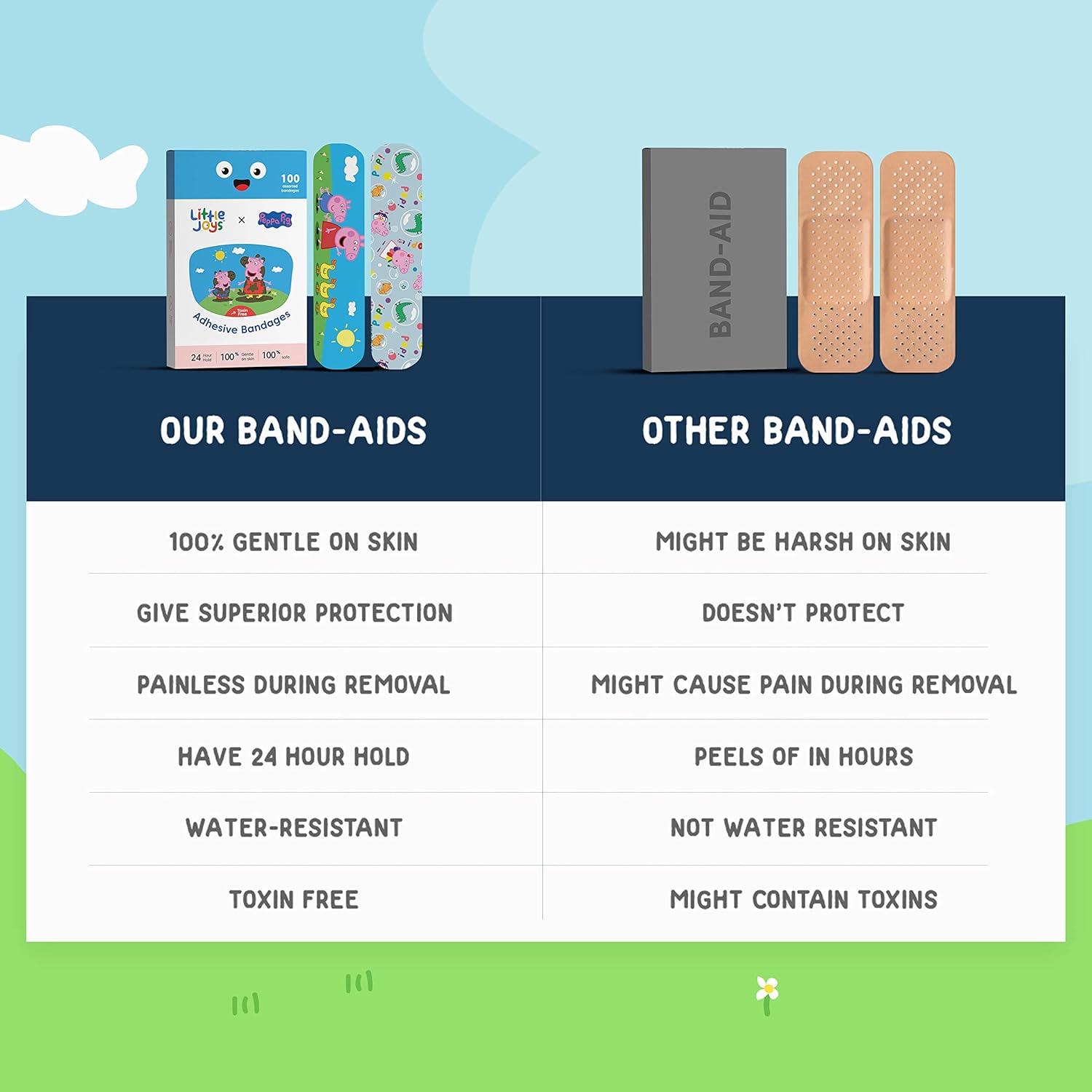 - NON-TOXIC – Our fun colorful peppa pig plasters are tough on germs, gentle on your wound and skin. Made with non-toxic breathable, lightweight and flexible quality material, these first aid strips help in healing minor cuts, scrapes, burns, blisters and more!