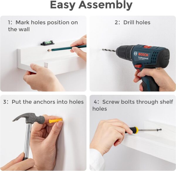 - Sturdy and Easy Installation: These bookshelves are made of durable materials and feature solid wood construction. With the included mounting hardware and simple installation instructions, you can easily install them securely on the wall.
