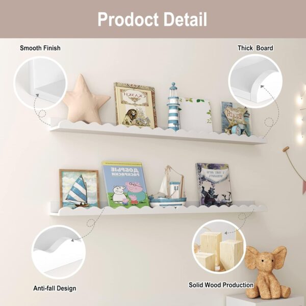- Multi-functional Design: This set of four Kids’ Bookshelves serves as both book storage and a picture ledge shelf, providing a versatile solution for your child’s room. It allows you to showcase favorite books, toys, and photo frames all in one place.