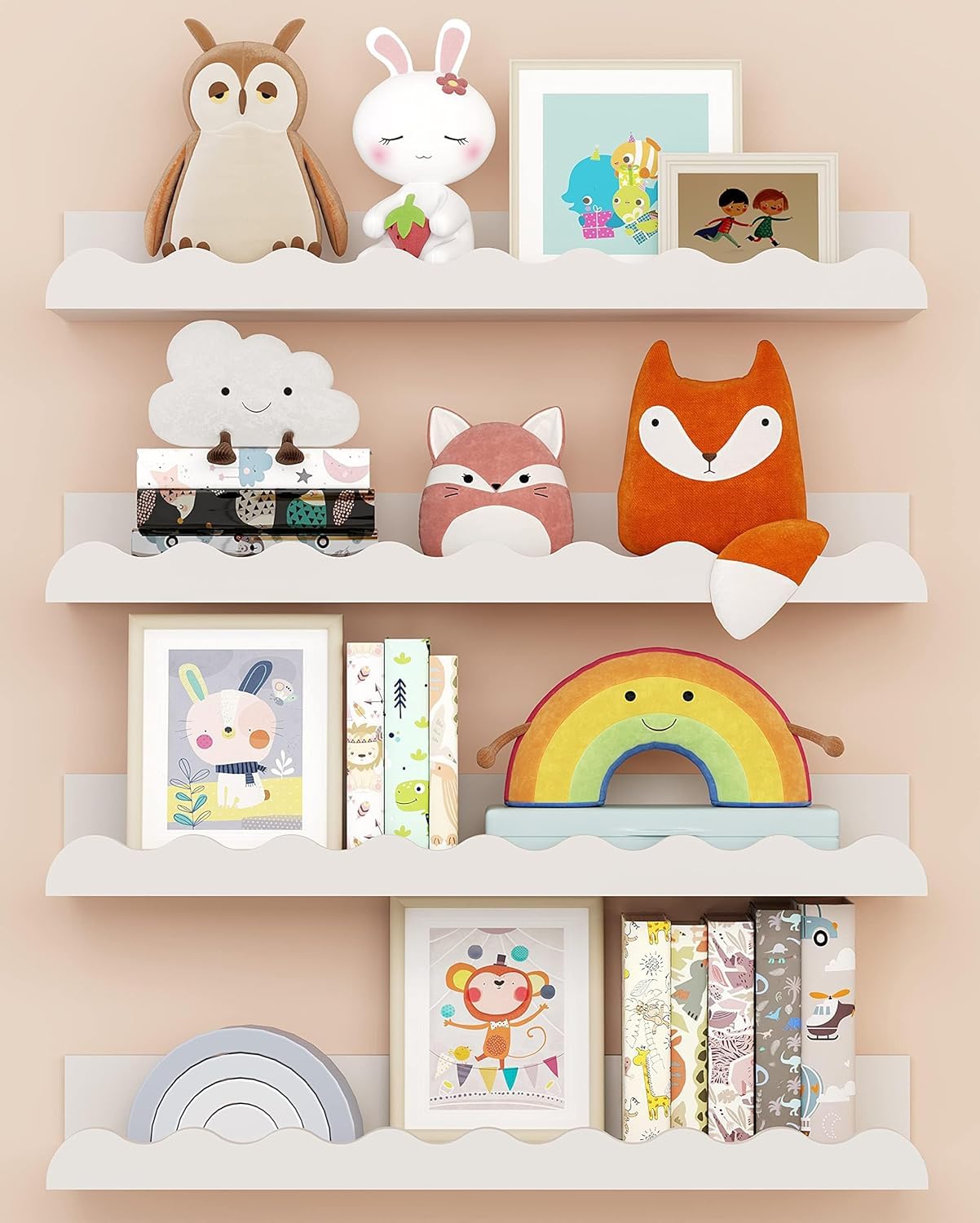 - Multi-functional Design: This set of four Kids’ Bookshelves serves as both book storage and a picture ledge shelf, providing a versatile solution for your child’s room. It allows you to showcase favorite books, toys, and photo frames all in one place.