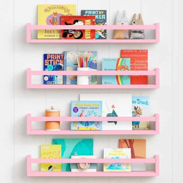 - [Set of 4 Wall Shelving] What you’ll get is not just 1 but 4 shelves! This way you can exploit the versatility of these kids bookshelves and use them in different situations in your house.