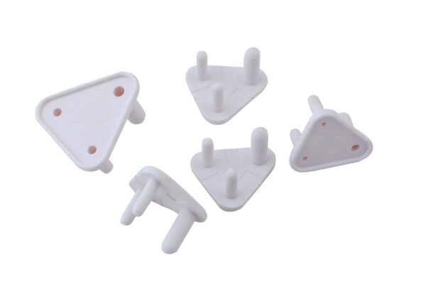 Electrical outlet covers, also known as “safe plates” are an additional cover that rests on top of your current outlet. This outlet cover is spring loaded and prevents your child from poking anything inside of it.