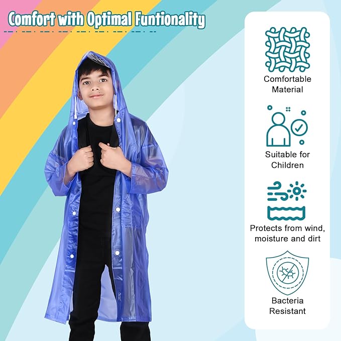 DURABLE CONSTRUCTION: Engineered with durability in mind, this rainwear set is crafted to withstand the rigors of active play and daily wear. Reinforced seams and apex quality materials ensure longevity, providing reliable protection against rain and moisture for extended periods.