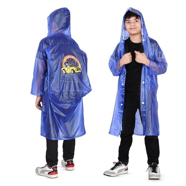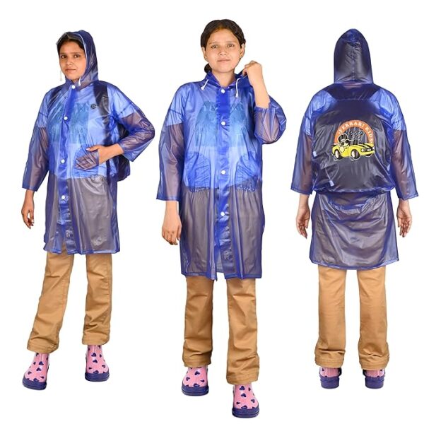PRACTICAL DESIGN: The raincoat’s design extends beyond protection, featuring ample pockets for storage and easy access. Specifically crafted to accommodate school bags, it offers added functionality, making it ideal for daily commutes during the rainy season.