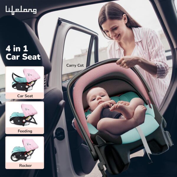 - 4-in-1 Car Seat: This travel system features a multi-functional car seat that adapts to four configurations, offering convenience and comfort for both parent and child. Use it as a car seat, carry cot, feeding seat, or rocker.