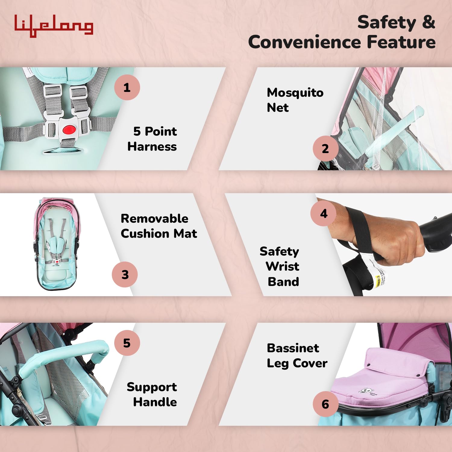 - Comprehensive Accessories: This system includes a bassinet leg cover, mosquito net, bottle holder, cushion mat, safety wrist band, and car seat leg cover, ensuring convenience and comfort for parents.