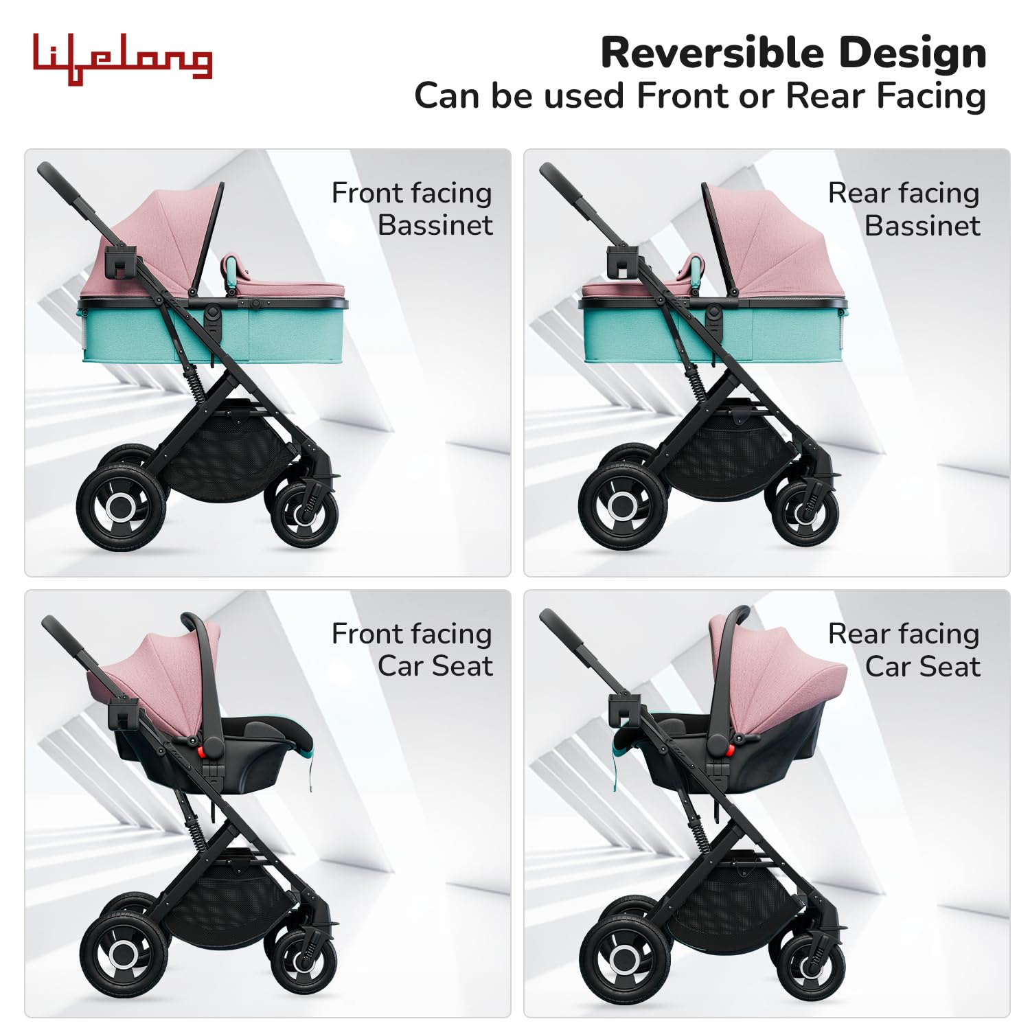 - 4 in 1 Reversible Bassinet, Car Seat, Pram, Carry Cot: This versatile travel system is perfect for infants up to 3 year old or 15 kg. It’s EN1888 certified, ensuring top-notch safety standards. The reversible bassinet can be easily transformed into a car seat or pram, offering flexibility for parents on the go.